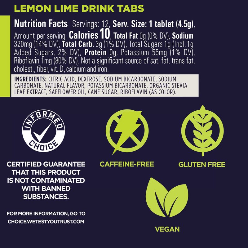 - Box includes four portable tubes, each containing 12 Lemon Lime tablets, 48 total servings