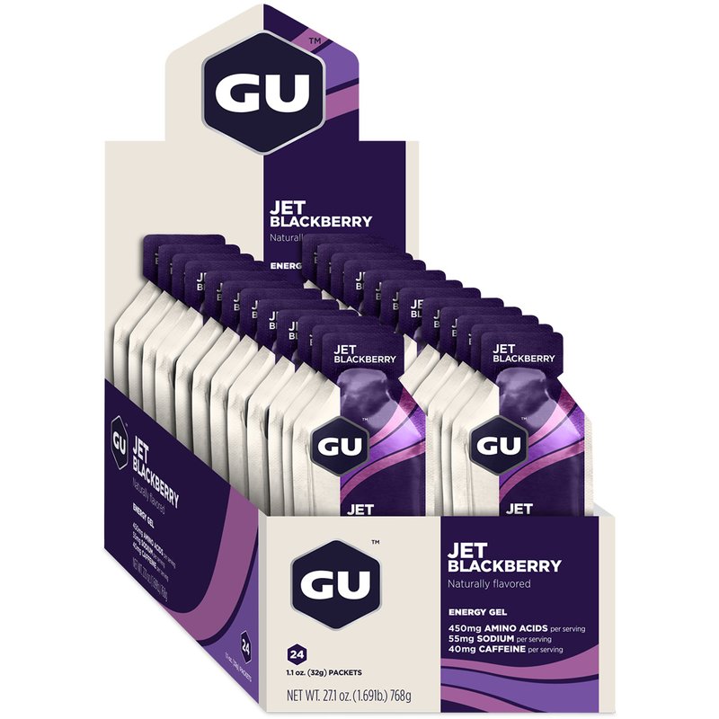 GU Energy Original Sports Nutrition Energy Gel, Vegan, Gluten-Free, Kosher, and Dairy-Free On-the-Go Energy for Any Workout, 24-Count, Jet Blackberry