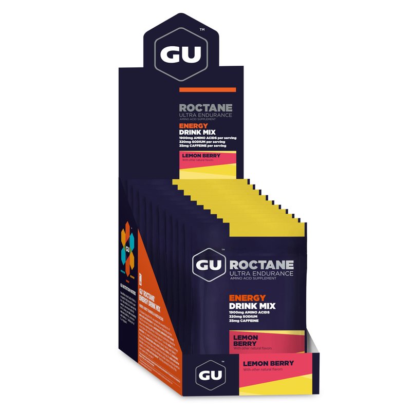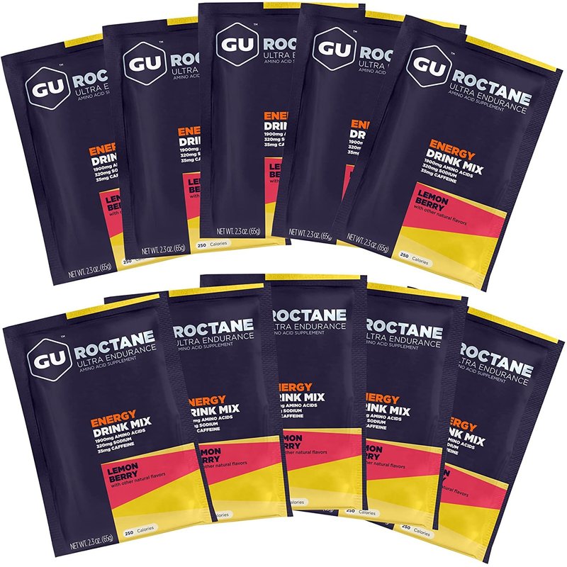 GU Energy Roctane Ultra Endurance Energy Drink Mix, Vegan, Gluten-Free, Kosher, Caffeine-Free, and Dairy-Free n-the-Go Energy for Any Workout, 10 Single-Serving Packets, Lemon Berry