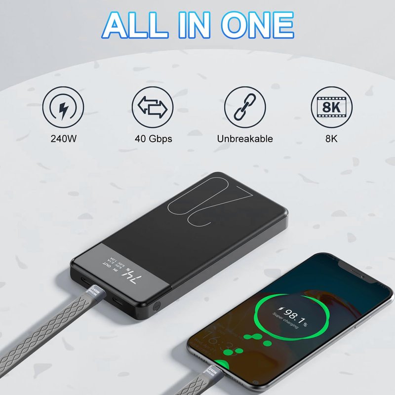 240W DP Fast Charging: Built-in E-Mark chip can safely and reliably provide up to 240W fast charging to ensure the best charging for your devices