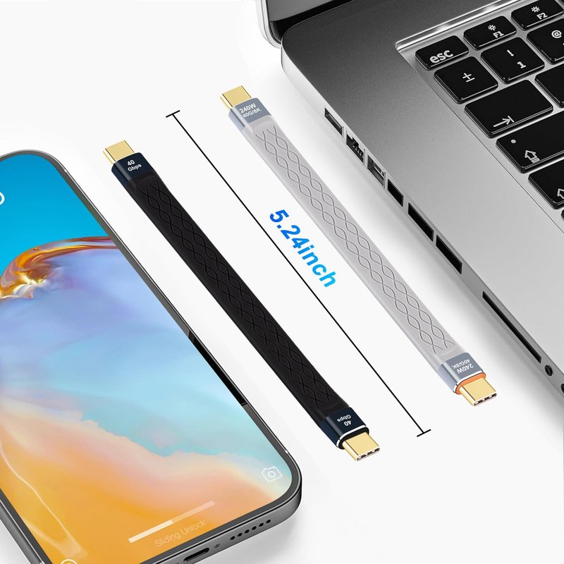 The short USB C to USB C cable supports 240W DP Fast Charging, 40Gbps Data Transfer and 8K Display. Suitable for external SSD, EGPU, Docking, MacBook, cell phone, power bank