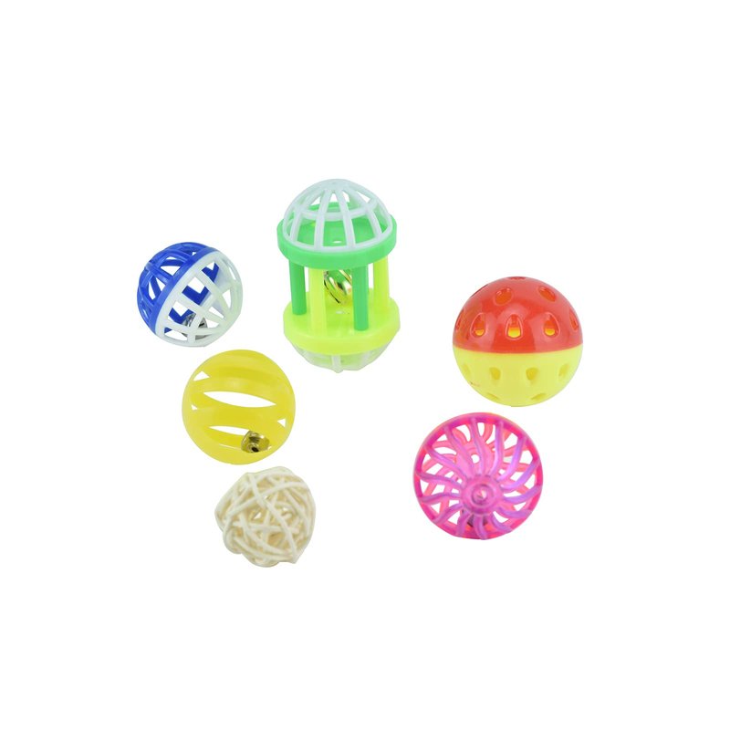 Package: 5 plastic rattle balls ,1 wicker ball