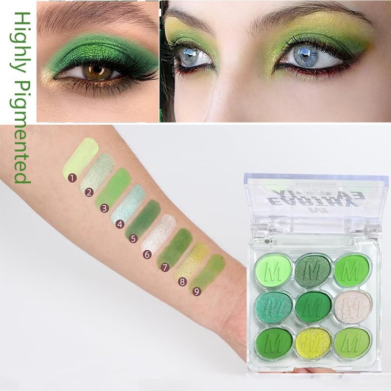Light Dark Green Eyeshadow Eye Shadow Palette Makeup,light deep Green Yellow 9 Colors Matte Glitter EyeShadow Long Lasting for woman