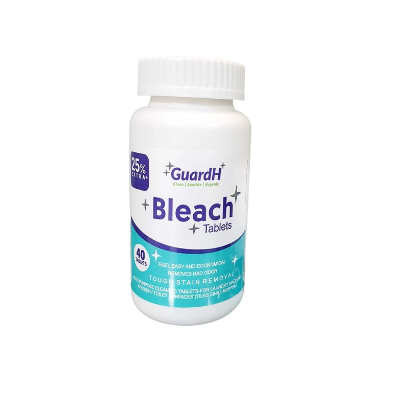 GuardH Bleach Tablets - 40 count. Bleach for laundry and multipurpose cleaning. Liquid bleach Alternative. Used for kitchen surfaces, bathroom tiles and toilet bowl cleaning.
