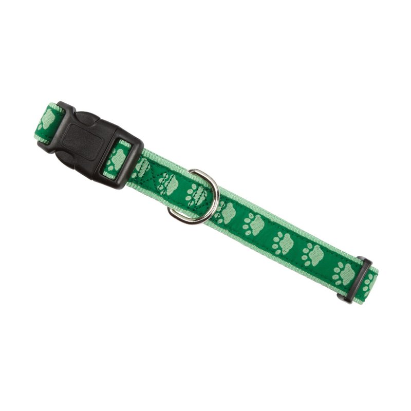 Guardian Gear Nylon Two-Tone Pawprint Dog Collar, Fits Necks 10" to 16", Green