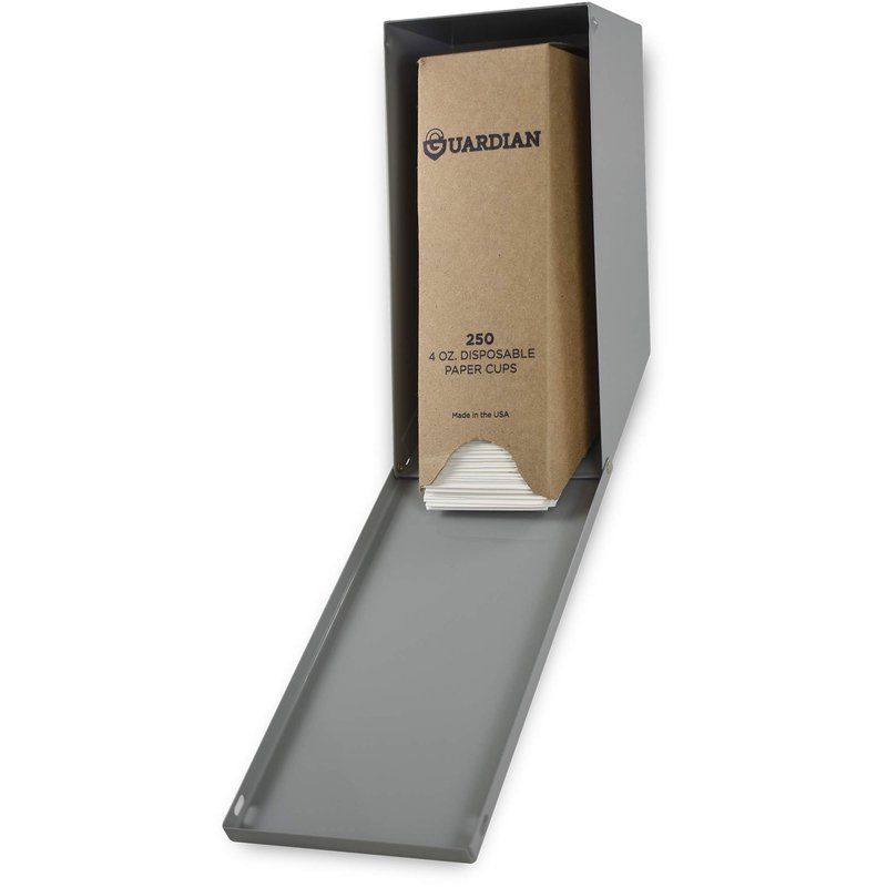 Guardian Paper Cup Dispenser Wall Mount (Gray, 250 Cup Capacity): Conveniently organize Guardian’s 4 oz paper cups with our disposable cup holder wall mount dispenser. This durable and user-friendly cup dispenser water cooler holder is custom fit to store and dispense Guardian’s 4 oz water cups. Our mountable cup holder securely holds 250 disposable paper cups and consistently dispenses one cup at a time to avoid waste. — How to Refill: The front-loading design of these dispenser paper cups holders allows for easy refilling. Simply open the front panel of this kitchen, break room, or bathroom cup dispenser, place the cup stack inside, and snap it close. The wall-mounted paper cup organizer can be installed on any wall or post – inside or out – by sliding the dispenser onto the mounting bracket. The formed and welded steel construction of our cup holder office dispenser is resistant to weather, corrosion, and fading, even in rough environments. This paper cup dispenser is ideal for many locations and uses such as water cooler areas, break rooms, fitness centers, hospitals, parties, trade shows, food trucks, and product demonstrations. --- About Us: Guardian Industrial Supply Group has been in operation for more than 35 years and is a leader in its field as a single source envelope and flexible paper packaging supply house. Our diverse community of customers ranges from multinational TSE corporations to privately held family businesses, food service to automotive, property management to government agencies.