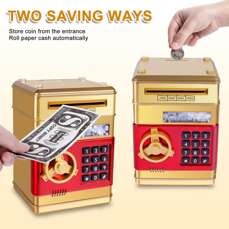 - High Capacity Cash Box:Our this electric atm savings bank can store 600 pieces of coins or 100 pieces of paper money.Piggy bank can encouraged kids to start saving money and help them develop a good habit of using money more organized