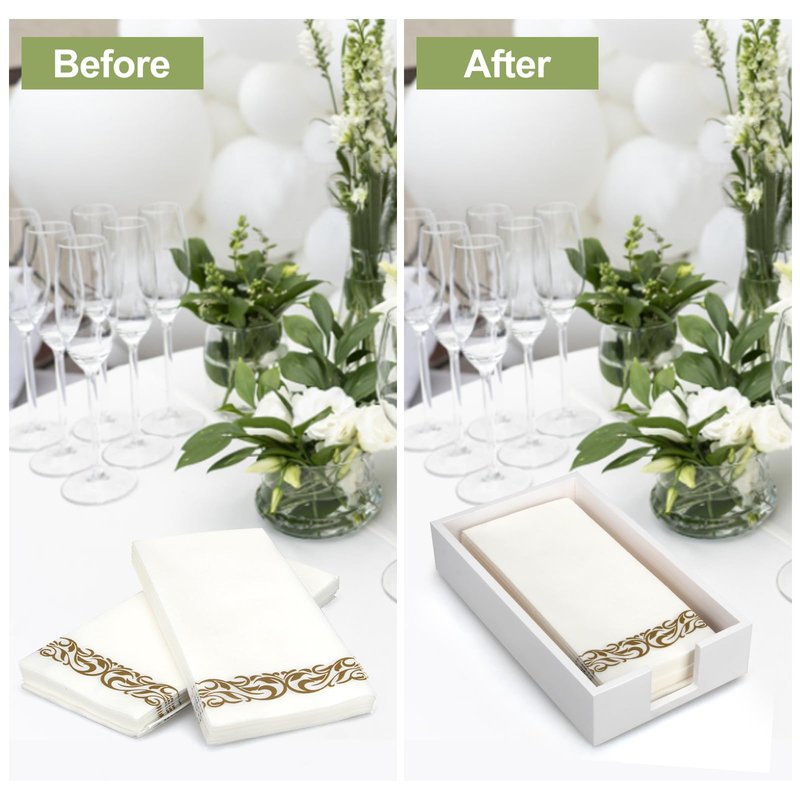 - 【Paper Towel Holders】: Just get one and display it your on the kitchen counter,dining table or office desk ,also can used as a tissue dispenser for your vanity and bathroom.This guest towel holder tray works great alone or mix and match it with other, napkin holder for cocktail will provides a stylish storage space for you!