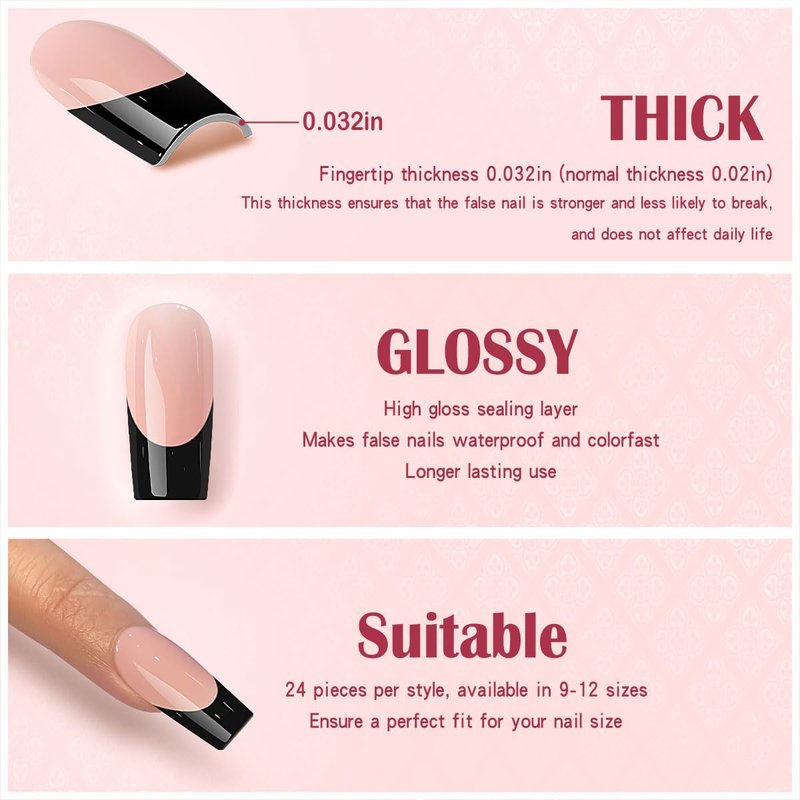 - QUALITY MATERIAL---acrylic press on nails full cover french tip nails made of acrylic ABS,environmentally friendly,no smell,not hurting hands,not easy to break.