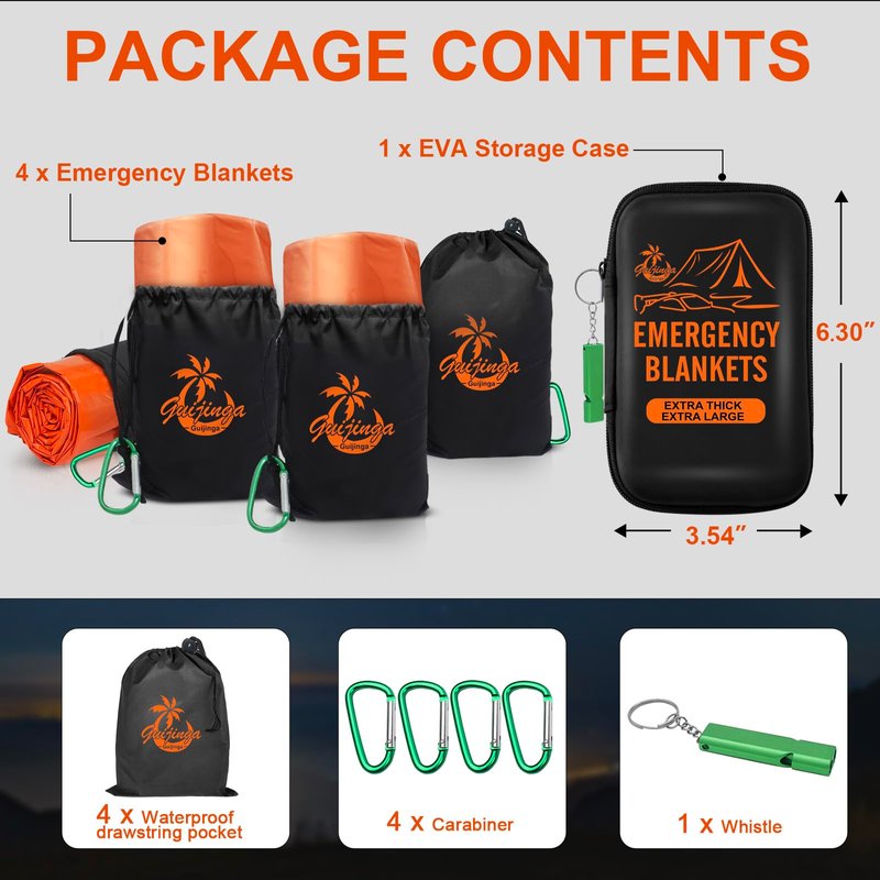 Guijinga Emergency Blankets for Survival, 2-Pack/4-Pack Space Blankets, Gigantic & Extremely Thick Survival Blanket, Suitable for Outdoor Survival, Camping, and Hiking