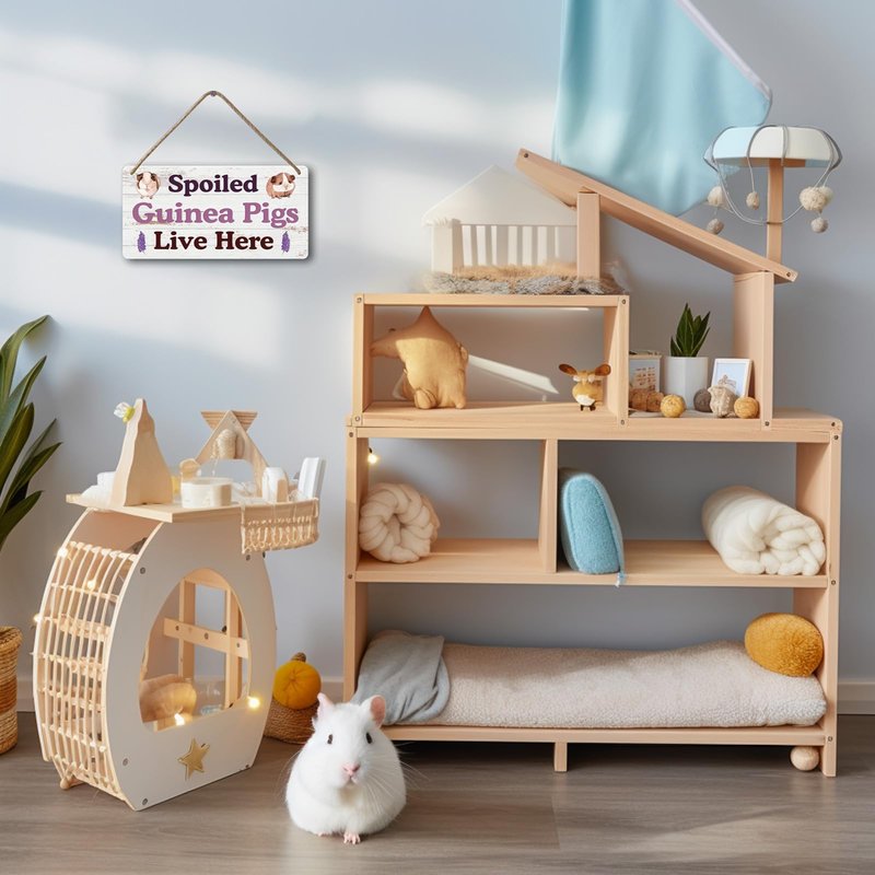 - SIZE FOR GUINEA PIG TOYS AND ACCESSORIES : 12 x 6 inch personalized text " Spoiled Guinea Pigs Live Here " to add fun and color to your room.
