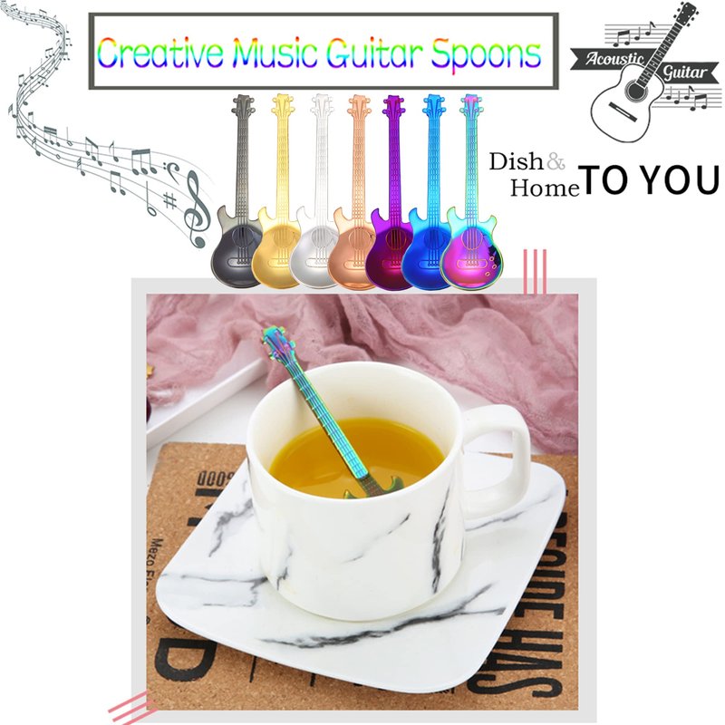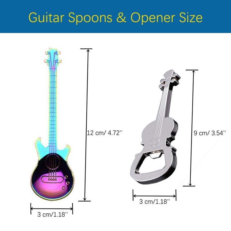 - ♬【Cute Guitar Spoons & Opener】: Ergonomic guitar colorful spoons make itself a cute home gadget, even decor in kitchen. Creative guitar opener integrates the music to meet your use.