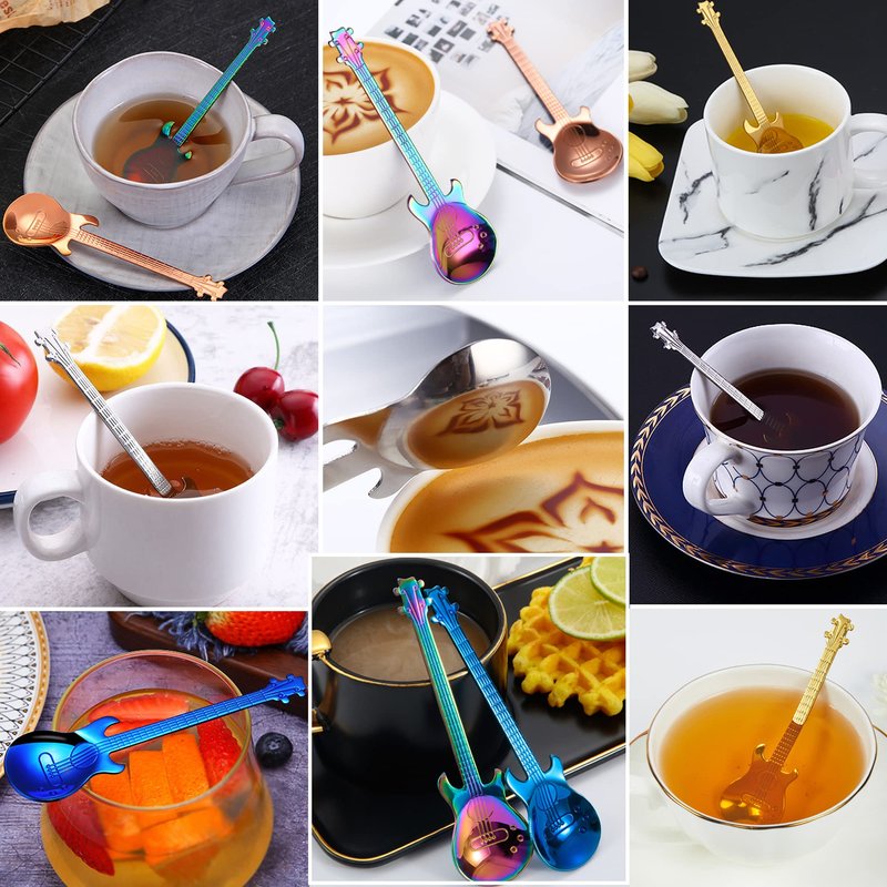 Guitar Spoons Coffee Teaspoon, ESRISE Musical Coffee Gifts for Men, Stainless Steel Cute Tea Spoons for Christmas Gifts Birthday Gifts (Multicolor)