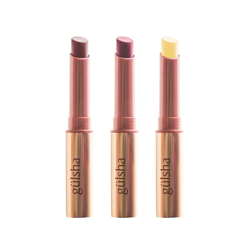 - gülsha Rose Kiss lip care offers three different shade options in clear or soft matte finishes. This lip moisturizer is formulated with Shea Butter, Cocoa Seed Butter, Jojoba and Sweet Almond Oils. Nourish and color your lips with natural long-lasting lipstick and lip balm in one!