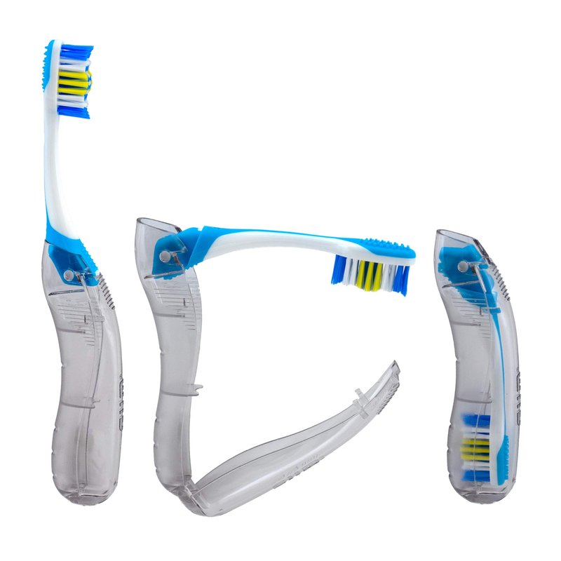 - PERFECT FOR ON-THE-GO: The GUM folding toothbrush makes it easy to carry a clean, plaque-free smile with you wherever you go. Simply fold our pocket toothbrush up and throw it in your bag for airplane travel, road trips, backpacking and camping trips.