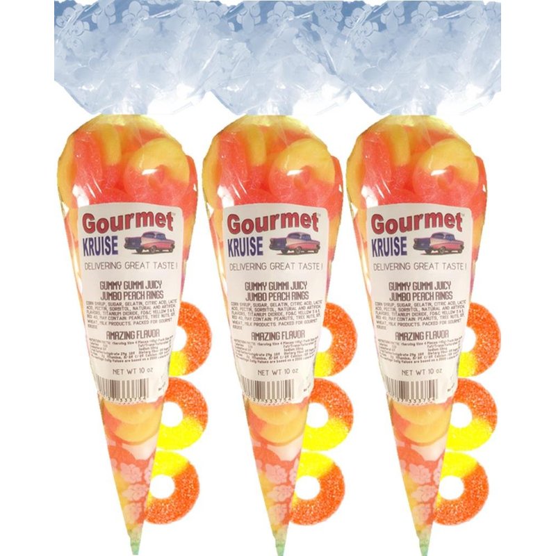 Gummy Rings Jumbo Peach (3 Pack) (NET WT 30 OZ) Gourmet Kruise Signature Gift Bags