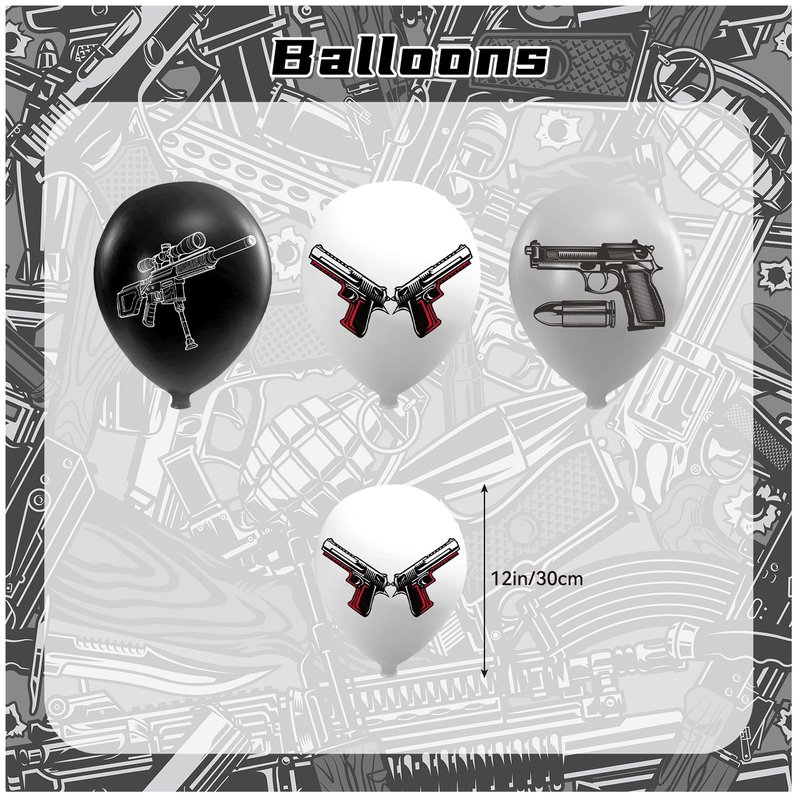 - Applicable Occasions: Gun themed party decorations can be used in many occasions, such as gun game party, military theme party, bullet target party, gun pistol shooting party, boot camp bound party, birthday party, baby shower, friends party, bringing you an unexpected experience.