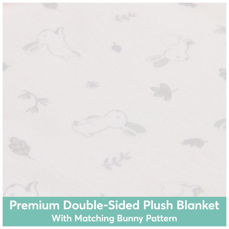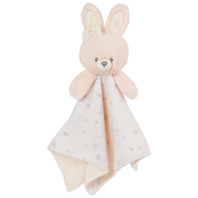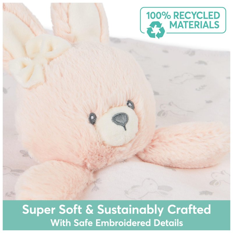 - 100% RECYCLED BUNNY LOVEY: This cute and sustainably made 10” lovey combines a pink plush bunny with a double-sided security blanket for comfort anywhere baby needs it. The 15” square blanket is also detailed with a cute matching bunny pattern.