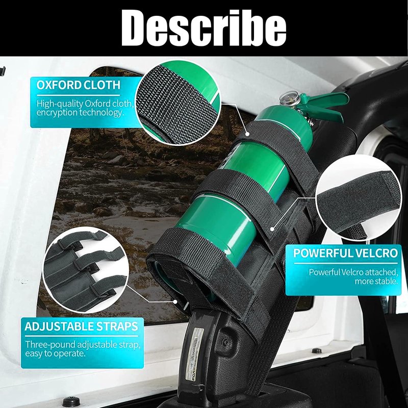 - Widely Compatible: This strap is suitable for fire extinguishers under 1.5kg/3.3lbs and diameter not larger than 92mm/3.6". This anti-roll bar fire extinguisher bracket replaces the Jeep Wrangler JL YJ TJ JK CJ JKU JLU and Gladiator JT.