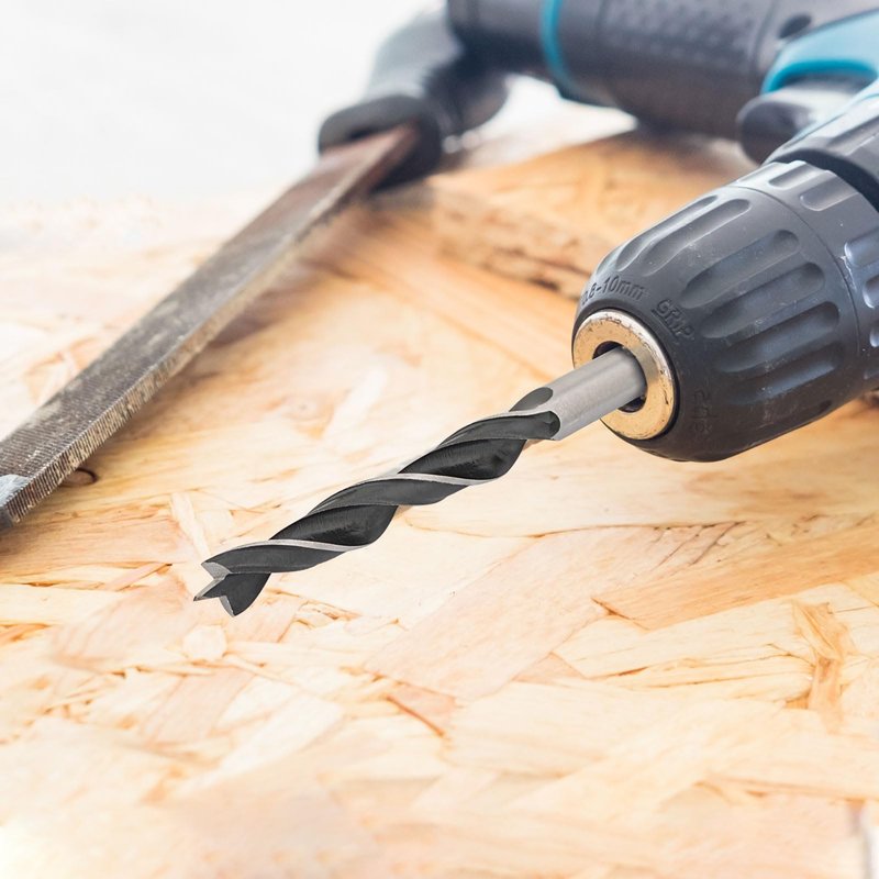 - ACCURATE DRILL BITS CENTERING: The round shank favors the accurate positioning of the brad point bits for creating holes and stay in the chuck without moving. With our hardwood brad point boring bits, the outlining spurs giving the bits its efficiency shear the wood grain during cutting and leave a smooth clean edge around the hole opening, meaning no need for finish sanding