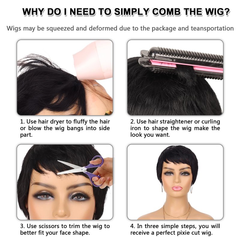 - 【WARM TIPS】 The pixie cut wig made by hand may exists some floating hair, which it’s normal phenomenon, you can reassure to use. All our pictures are taken by real products, due to long-distance transportation, the hair may be squeezed. After simple combing, it will be the same as the pictures.