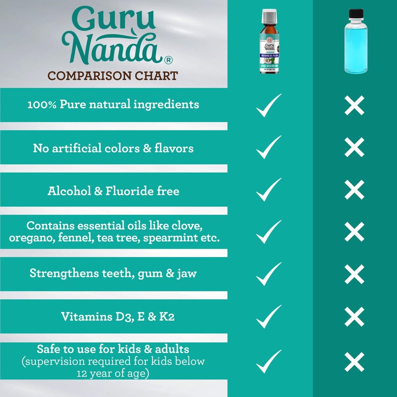 - IDEAL FOR DAILY USE: GuruNanda oil pulling is an alcohol-free, fluoride-free, preservative-free, cruelty-free ayurvedic recipe that contains no artificial flavors, making it safe and easy to use daily for long-term oral care. It is recommended to oil pull at the beginning of your day on an empty stomach for up to 10 minutes a day for ultimate benefits. This specific formula is a holistic way of taking care of your oral hygiene.