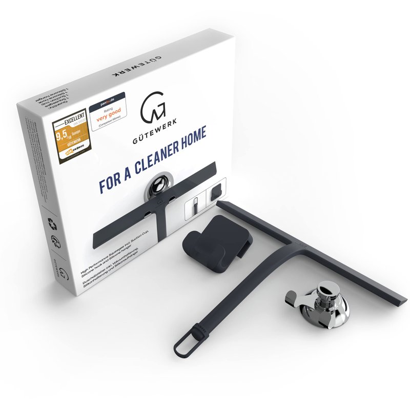 - MINIMALIST TIMELESS DESIGN - The GÜTEWERK glass squeegee is crafted with a matte black finish that impresses with its elegant timeless and smart design. In addition, the chrome-colored stainless-steel hook integrates well with any modern bathroom.