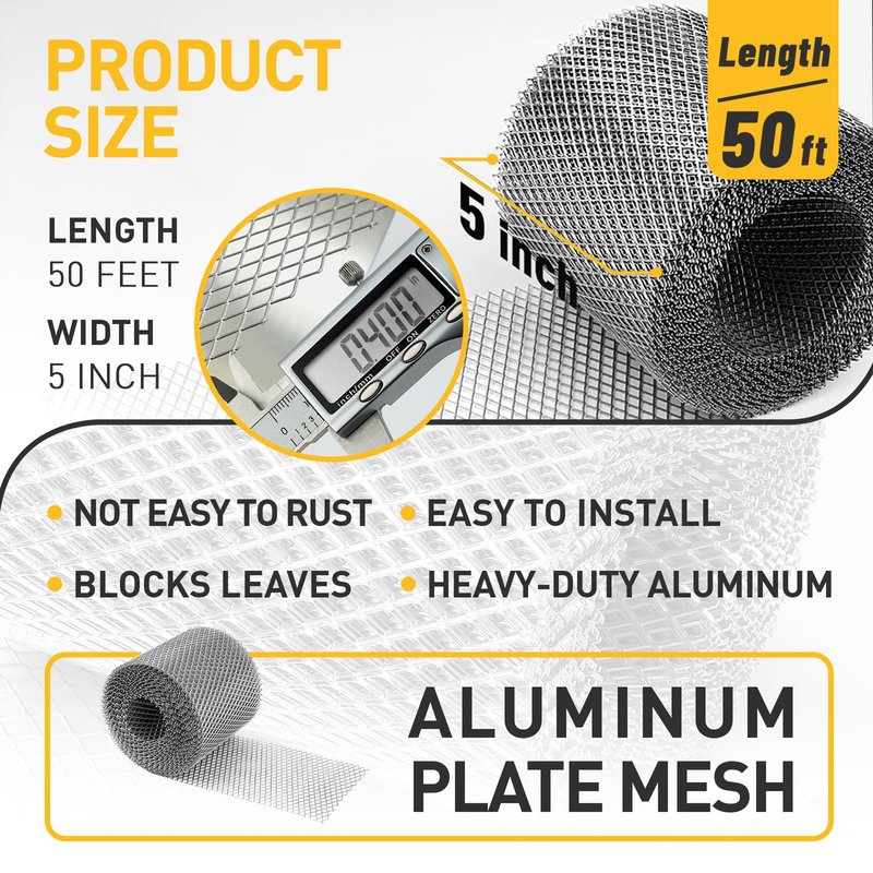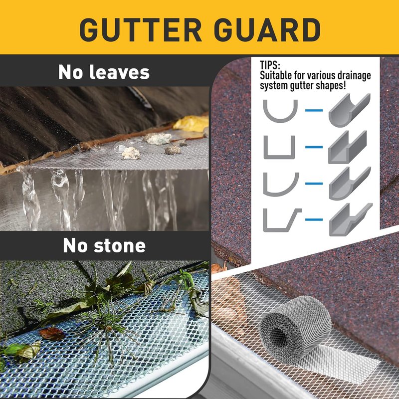 - What You Will Get: 5 Inch x 50 Fee Gutter Guard Roll. This is the perfect tool to keep leaves, twigs, branches and small animals from entering the gutter in rainy and snowy days.