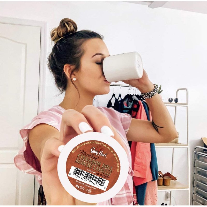 - SMOOTH MEDIUM ROAST COFFEE: Guy Fieri's cinnamon hazelnut coffee pods pay homage to all the decadent flavored coffee he's enjoyed over the years. These Hazelnut Cinnamon Roll coffee coffee pods allow you to enjoy decadent coffee in the comfort of your own home