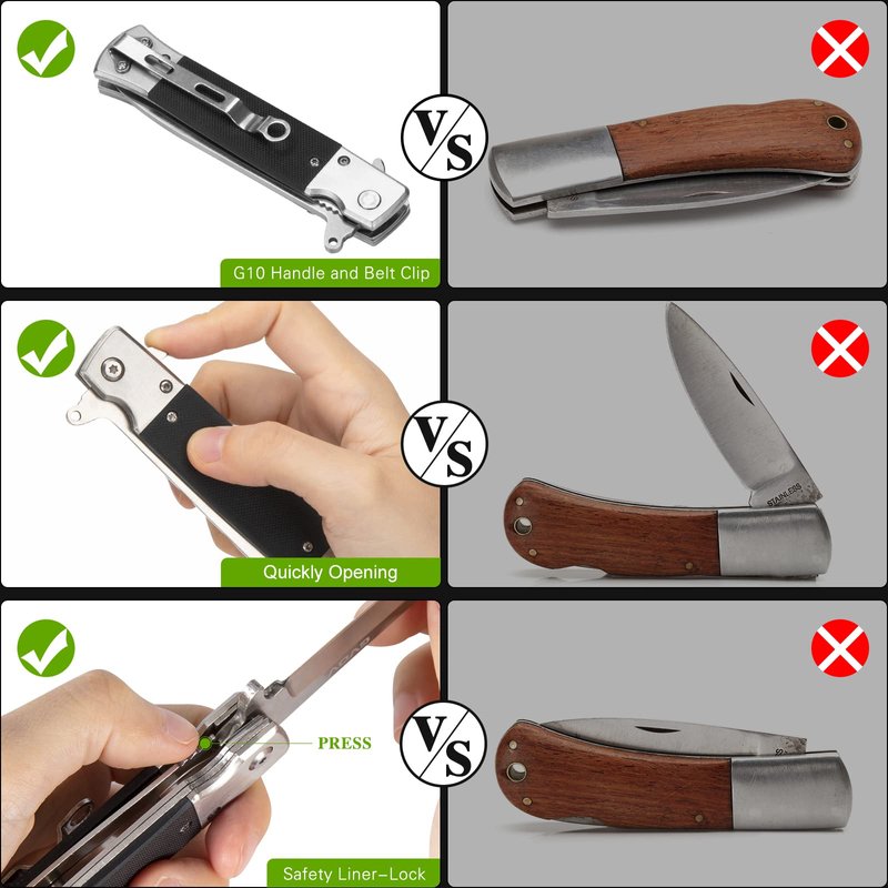 - 【High performance Steel】The blade of the pocket knives are made of sharp 7CR17 stainless steel, which is durable, resists rust and stain resistant.