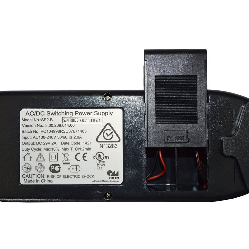 AC/DC Switching Power Supply Model # SP2-B Version No: 3.00.209.014.00 New designed Okin Lift Chair power supply for 24V DC Motors. Compatible with older styles 3.00.207.036.00, 3.00.210.002.00. Works with BetaDrive and DeltaDrive Okin Lift Chair Motors. Battery Back up: 9 volt batteries (batteries not included). Commonly found in Berkline lift chairs, Medlift, Pride, Golden, ALC, Action Lift Chair, Comfort Chair Company and Lazy Boy Lift Chairs. Compatible with Part Numbers: W52RA73-290018, KDDY001, KDDY008, ZB A290020-B