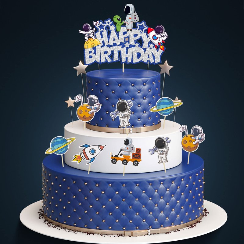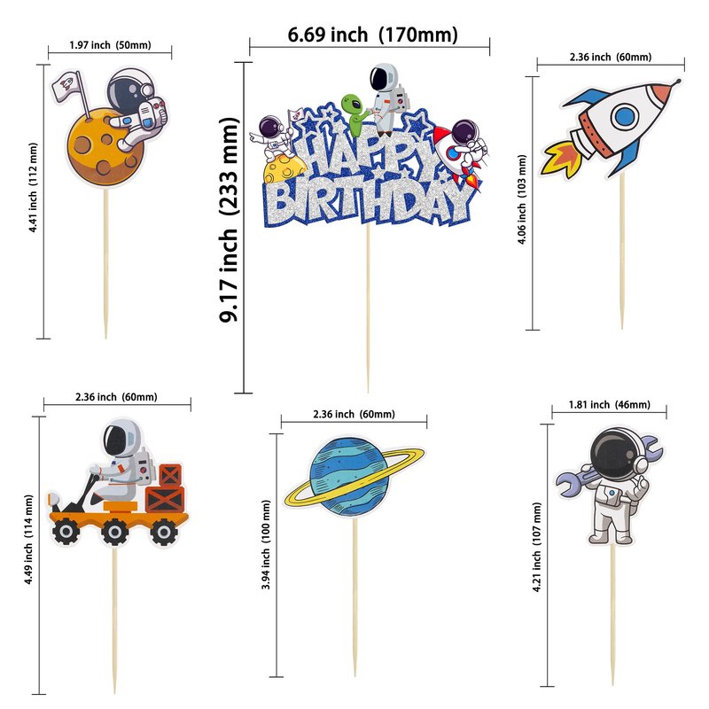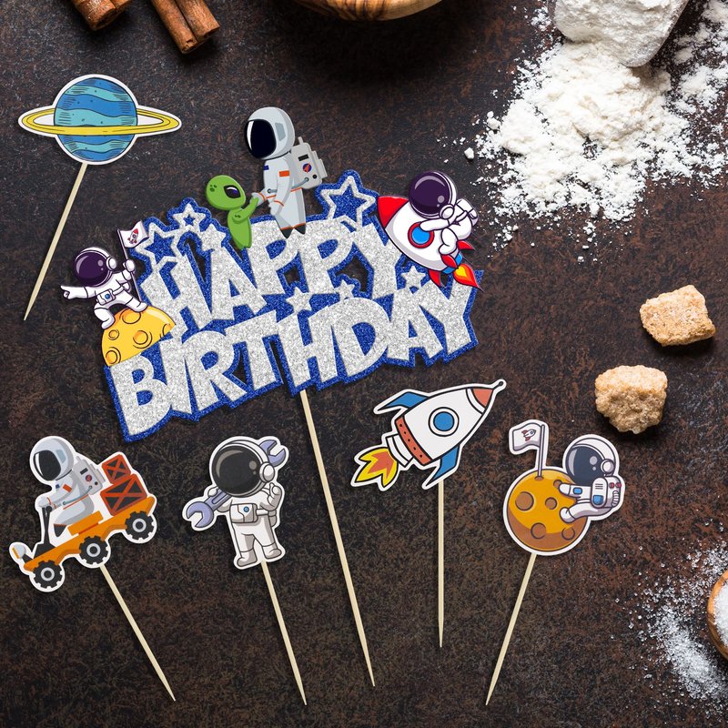 - 💕💕These Space Happy Birthday Cake Toppers are so cute and good for outer space theme party, astronaut universe theme party, space astronaut theme party, trip to the moon theme party, baby shower theme party,kids birthday party cupcake decorations. They can make your cupcake more attractive and bring the fun to your party. You can also apply them for ice cream, fruits, cookies and other desserts.