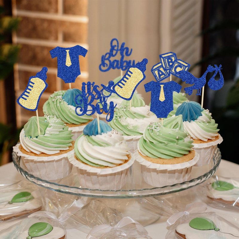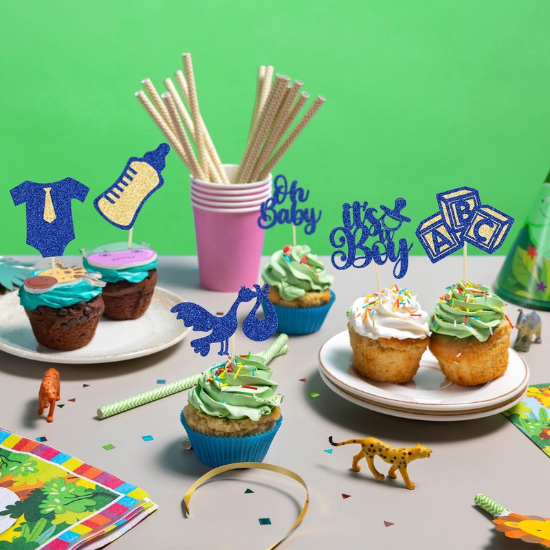 - These Baby Boy Cupcake Toppers are so cute and good for baby shower theme party, gender reveal theme party, kids baby boy birthday party cupcake decorations. They can make your cupcake more attractive and bring the fun to your party. You can also apply them for ice cream, fruits, cookies and other desserts.