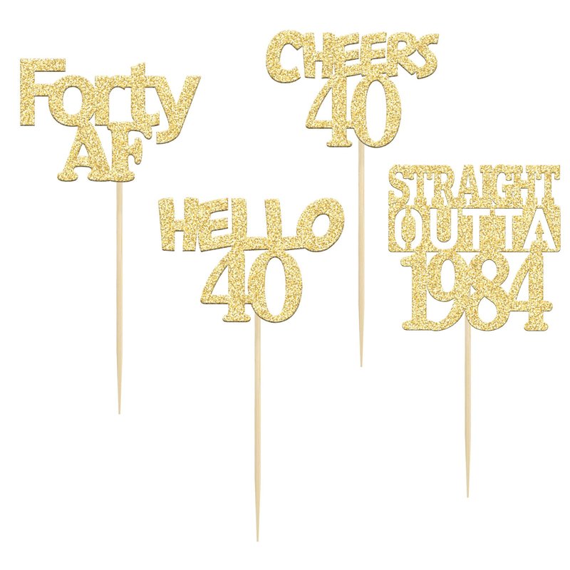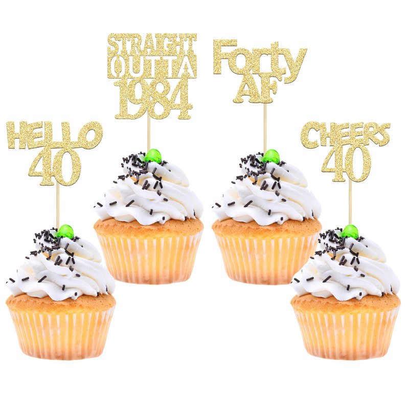 Gyufise 24Pcs Gold Glitter Straight Outta 1984 40th Birthday Cupcake Toppers Hello 40 Forty Cake Picks Decorations for 40th Birthday Anniversary Retirement Party Supplies
