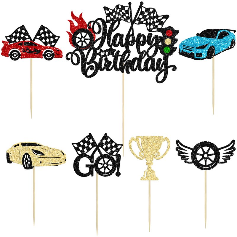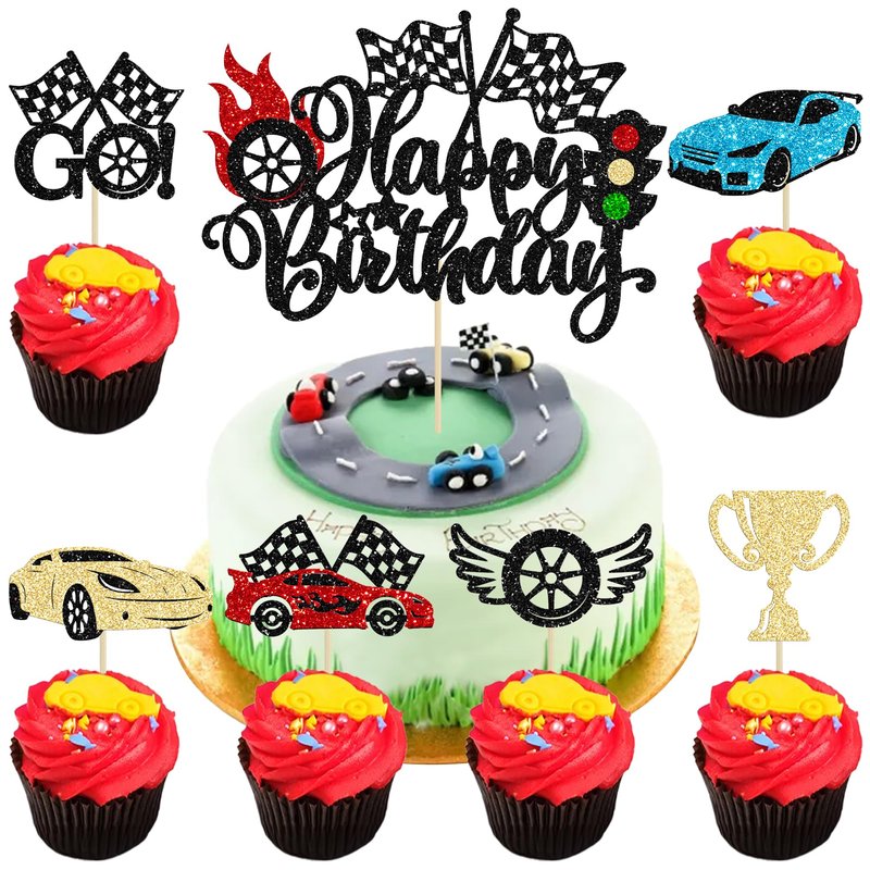 - --These Race Car Birthday Cake Toppers Set are so cute and good for race car theme birthday party, let's go racing theme party, sports theme party, baby shower theme party, boys birthday party cupcake decorations. They can make your cupcake more attractive and bring the fun to your party. You can also apply them for ice cream, fruits, cookies and other desserts.