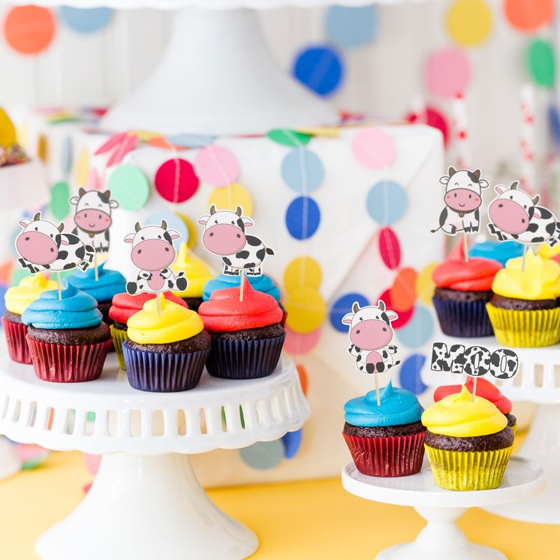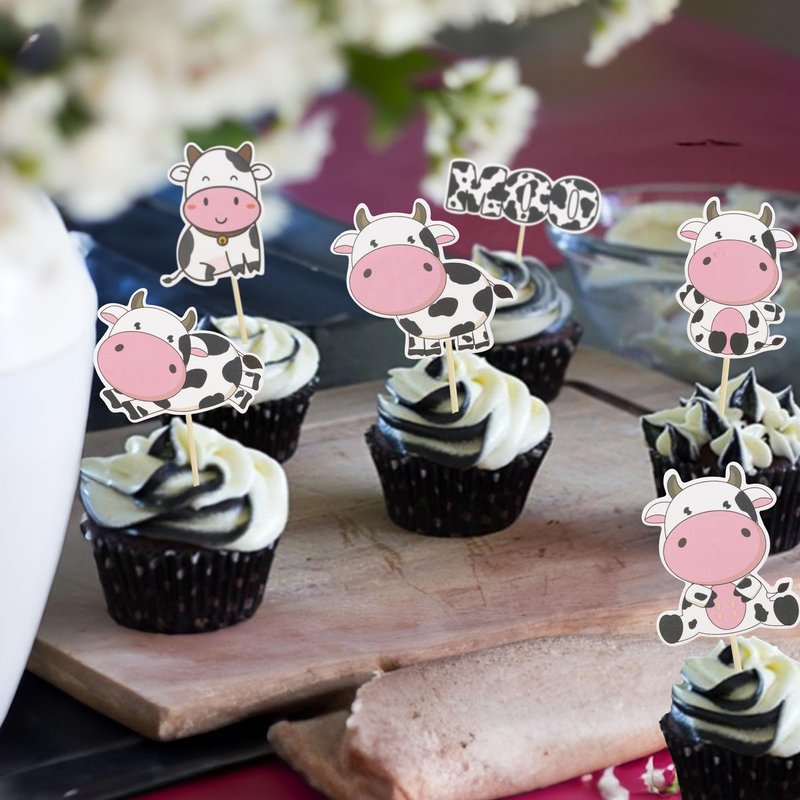 - 🐮These glitter Cow Cupcake Toppers are so cute and good for cow theme party,farm animal theme party,baby shower party, kids birthday party cupcake decorations. They can make your cupcake more attractive and bring the fun to your party. You can also apply them for ice cream, fruits, cookies and other desserts.