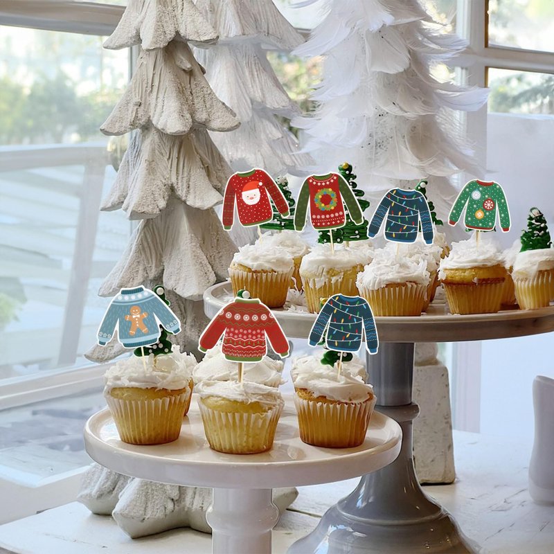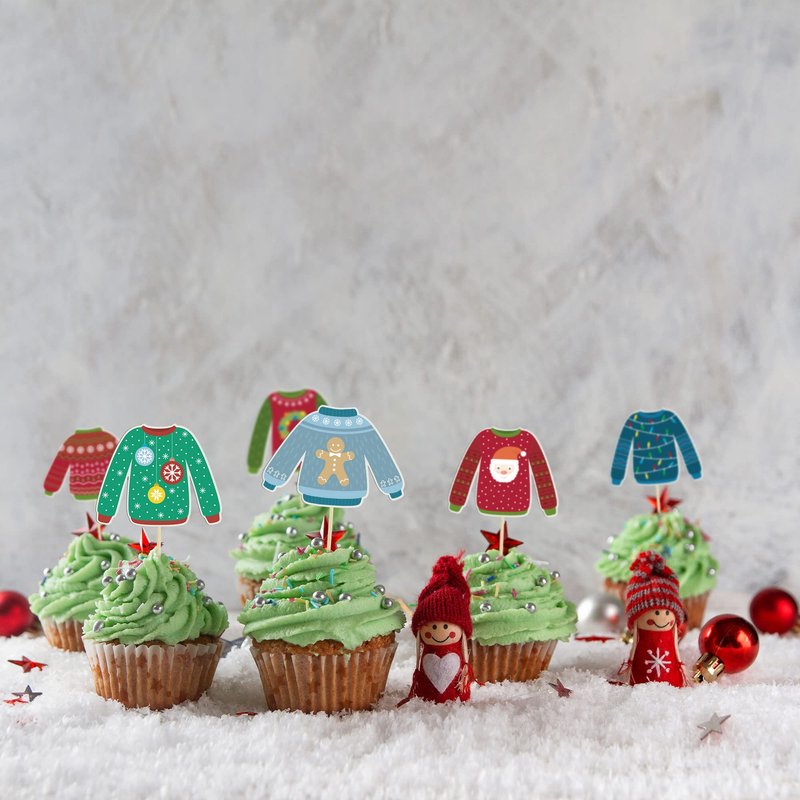 - 🎅🦌🌲 Ugly Sweater Cupcake Toppers are so cute and good for Merry Christmas theme party, Ugly Sweater theme party, winter babyshower party, happy new year holiday party, birthday party cupcake decorations. They can make your cupcake more attractive and bring the fun to your party. You can also apply them for ice cream, fruits, cookies and other desserts.