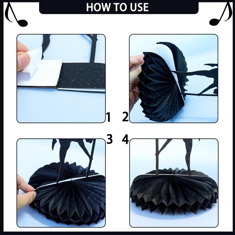 • -Premium Material: These Music Honeycomb Centerpieces are made of sturdy card stock with surface laminated and delicate printing technology. How to use: Step1, tear off the sticker of the honeycomb ball. Step 2, stick the honeycomb ball to a fixed area on the card. Step 3, repeat on the other side of the card. Step 4, finally put it stand on the table. It's so easy that you can save a lot of time.