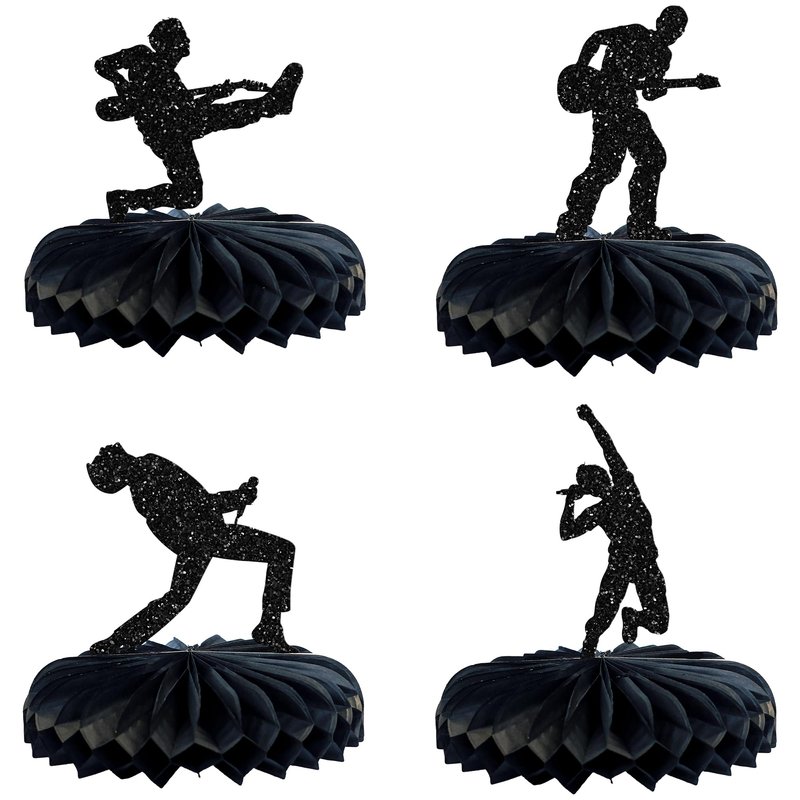 Gyufise 8Pcs Music Honeycomb Table Centerpiece Black Glitter Rock Pop Music Theme Table Toppers Honeycomb Centerpieces for Music Concert Theme Boys Girls Birthday Party Decorations Supplies
