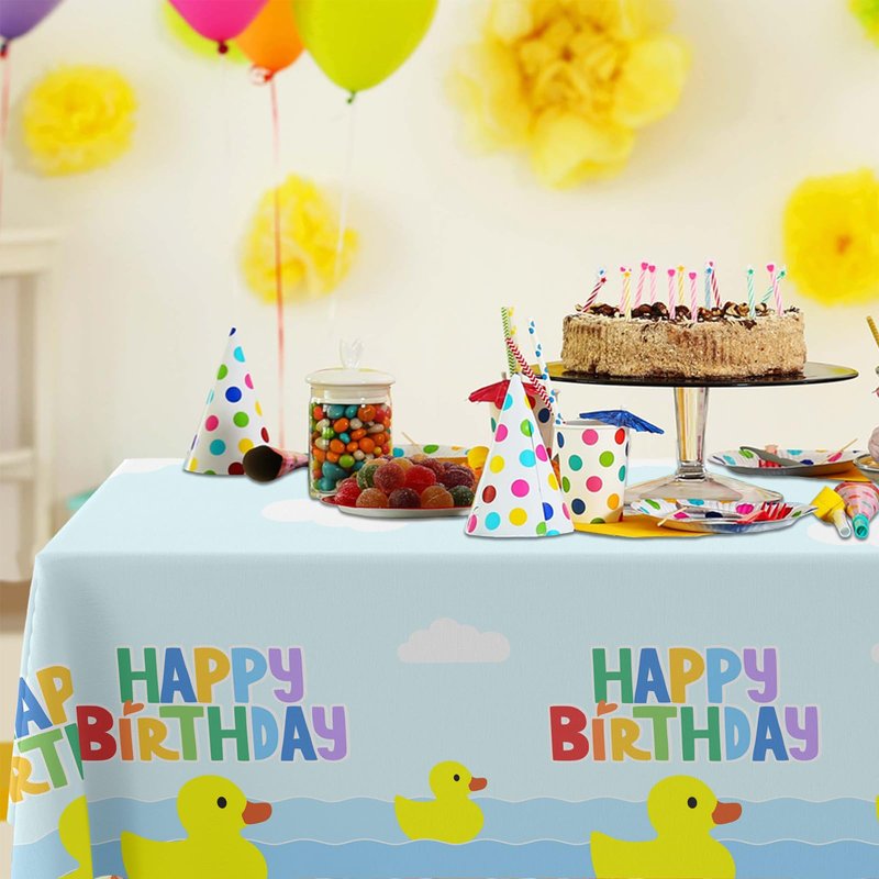 GZBJMYGS Duck Happy Birthday Tablecloth Duck Animal Party Plastic Supplies Animal Theme Baby Shower Boys Girls Blue Birthday Party Supplies Party Picnic Camping Plastic Table Cover Decorations