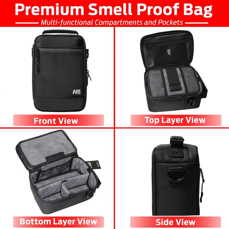 H5 Smell Proof Stash Box Set - Premium YKK Zippers - Odor Proof Dog Tested Bag Plus Smellproof Container, 4X Resealable Pouch Baggies, Strap, Combo Lock- Smell Proof Case/No Scent Travel Storage Bag
