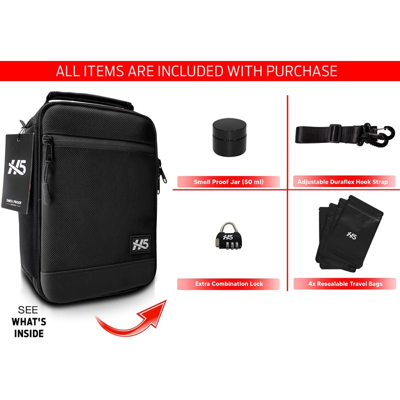 - Includes Smell Proof Jar, 4x Resealable Travel bags, Extra Combination Lock