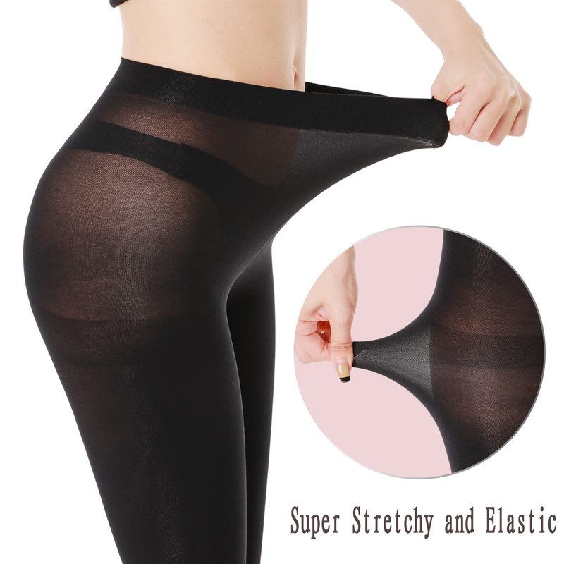 HA WA 2 Pairs Semi Opaque Tights, Winter Control Top 40D Microfiber Leggings for women