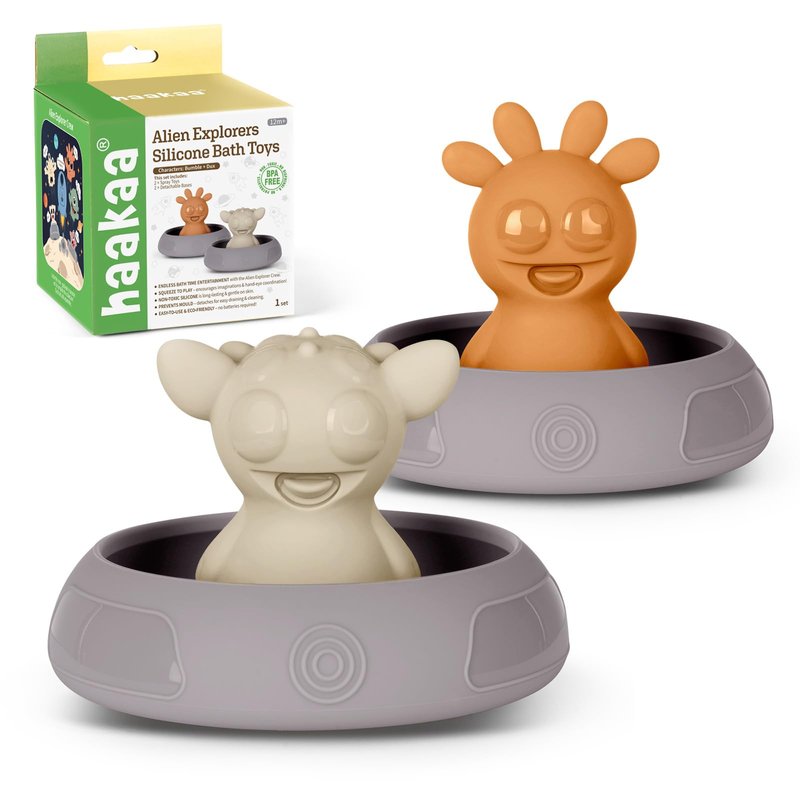 Haakaa Alien Explorers Baby Bath Toys, Food Grade Silicone Toddler Squirt Water Toys for Bathtubs/Swimming Pools/Beaches, Detachable Mold Free Floating Tub Toys for Kids Ages 1-3 (Bumble+Dux)