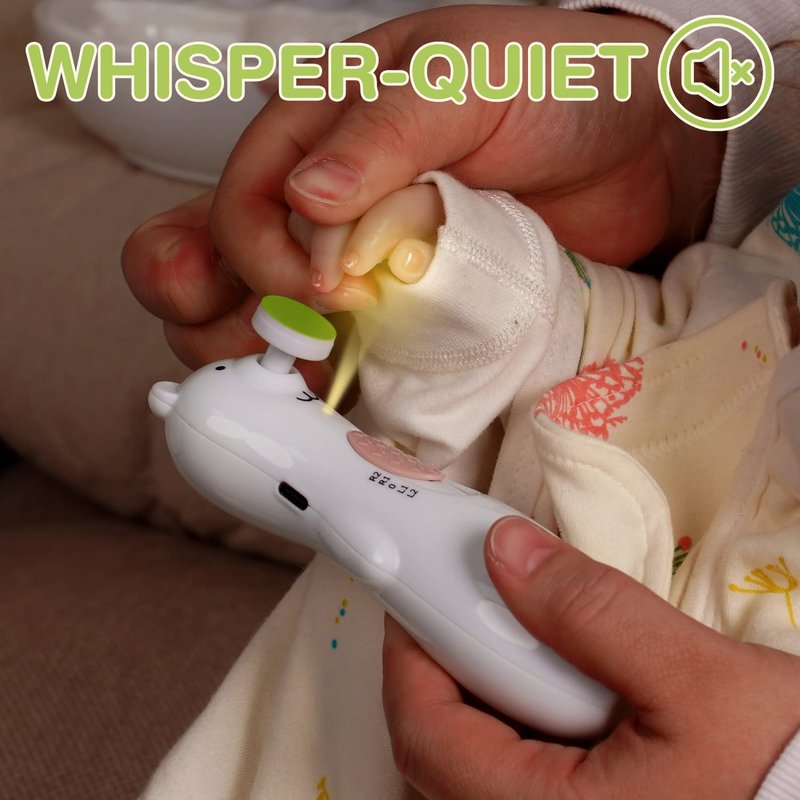 - SAFE AND GENTLE: Trim and polish with quiet precision, ensuring baby’s skin remains free from accidental scratches caused by quickly growing nails.