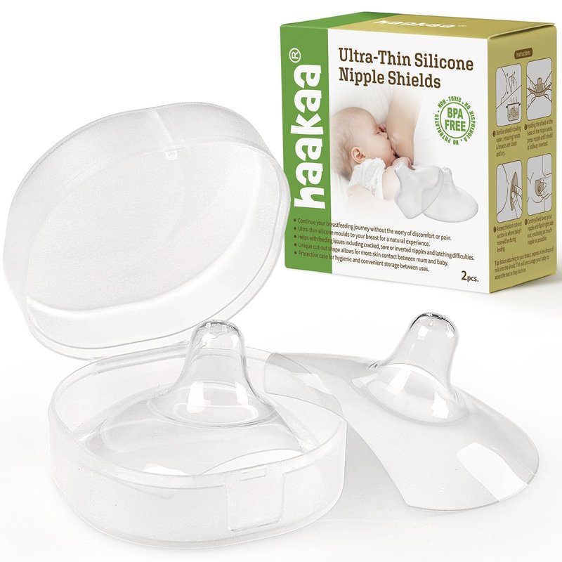- [Ultra-thin, Super-soft, BPA-free] - Haakaa nipple shields for breastfeeding is made of 100% food grade silicone, flexible and ultra-thin, BPA, PVC and phthatale free. The super soft silicone materials gently attach to your breast and be wramed with mum's body temperature, providing a natural and comforting feel for both mum and baby.