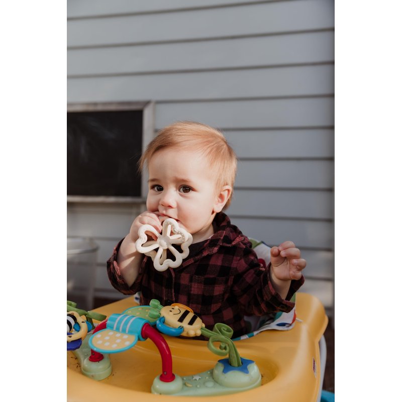Help your baby get through the pain of teething time with our nature-inspired Silicone Clover Teether! Featuring a unique 6-leaf design and soft-yet-sturdy 100% food-grade silicone construction, it's super easy to hold and chew, making it perfect for soothing aching gums. Each leaf edge features raised bumps and ridges to provide added comfort, and because it's silicone, the teether can be popped into the fridge or freezer for that extra layer of cooling relief. Simple to clean, the Silicone Clover Teether is the ideal choice for your precious little one.