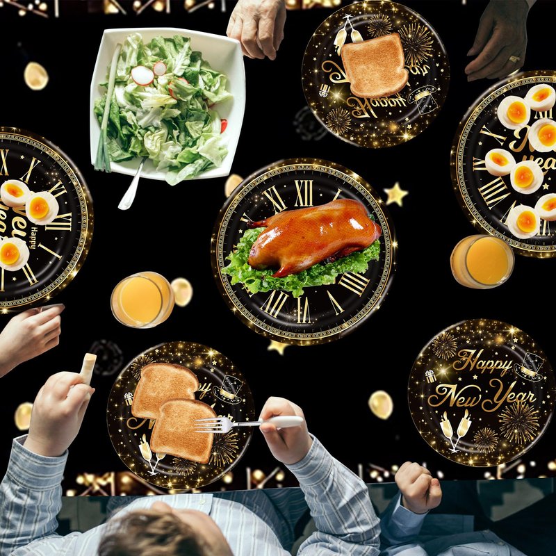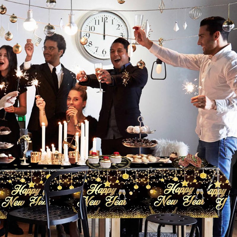 - Proper Size: the plates has two sizes of 9" and 7",each happy new year tablecloth measures about 137cmX274cm (54"x108")