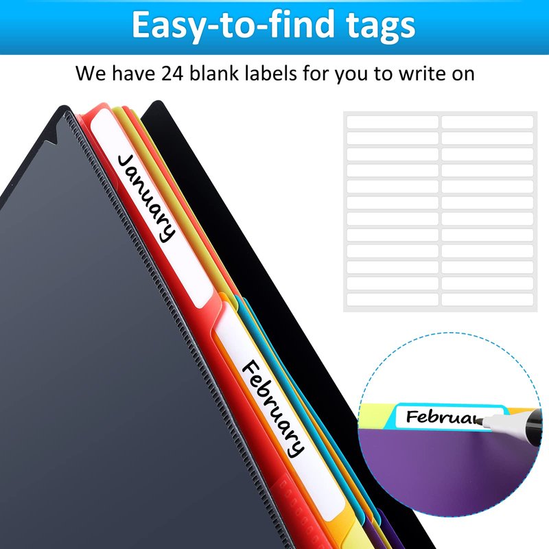 - 【12 POCKETS WITH TABS】The accordion file folders has a total of 6 binder, each binder has pockets on both sides, it can be used on both sides, you can get a total of 12 binder folders with pockets. Each folders has raised labels, allowing handwritten labels to be added.