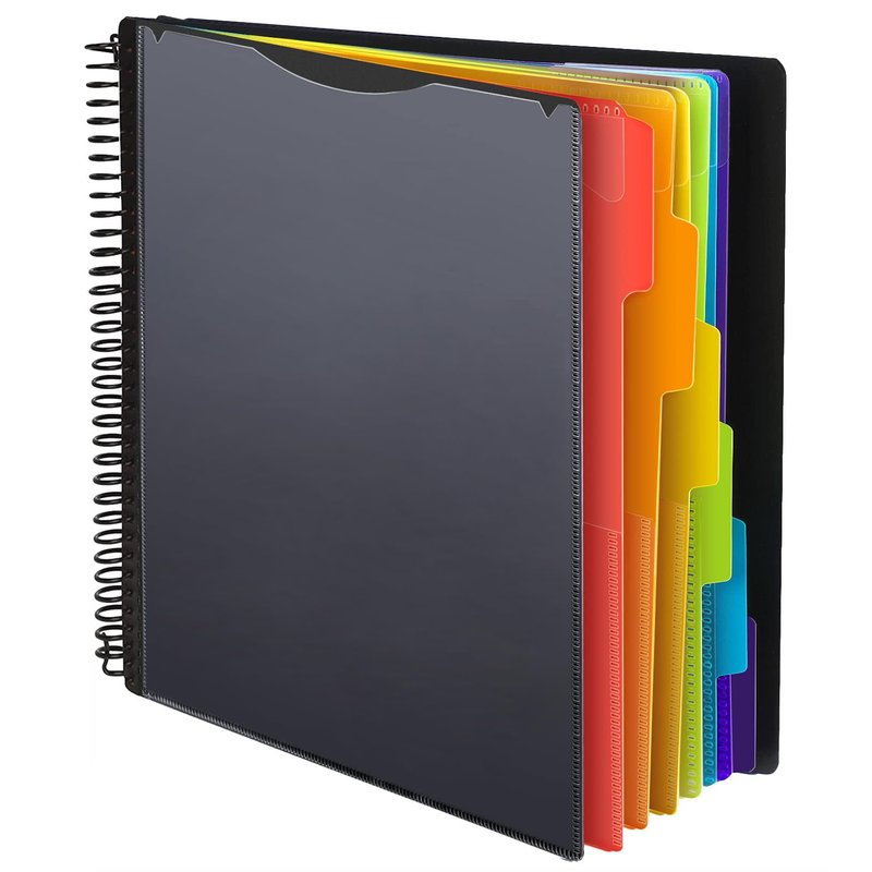 HABGP 12 Pocket, 6 Subject, Spiral Project Organizer with 6 Dividers, Customizable Front Cover, Erasable Write On Tabs in Assorted Colors
